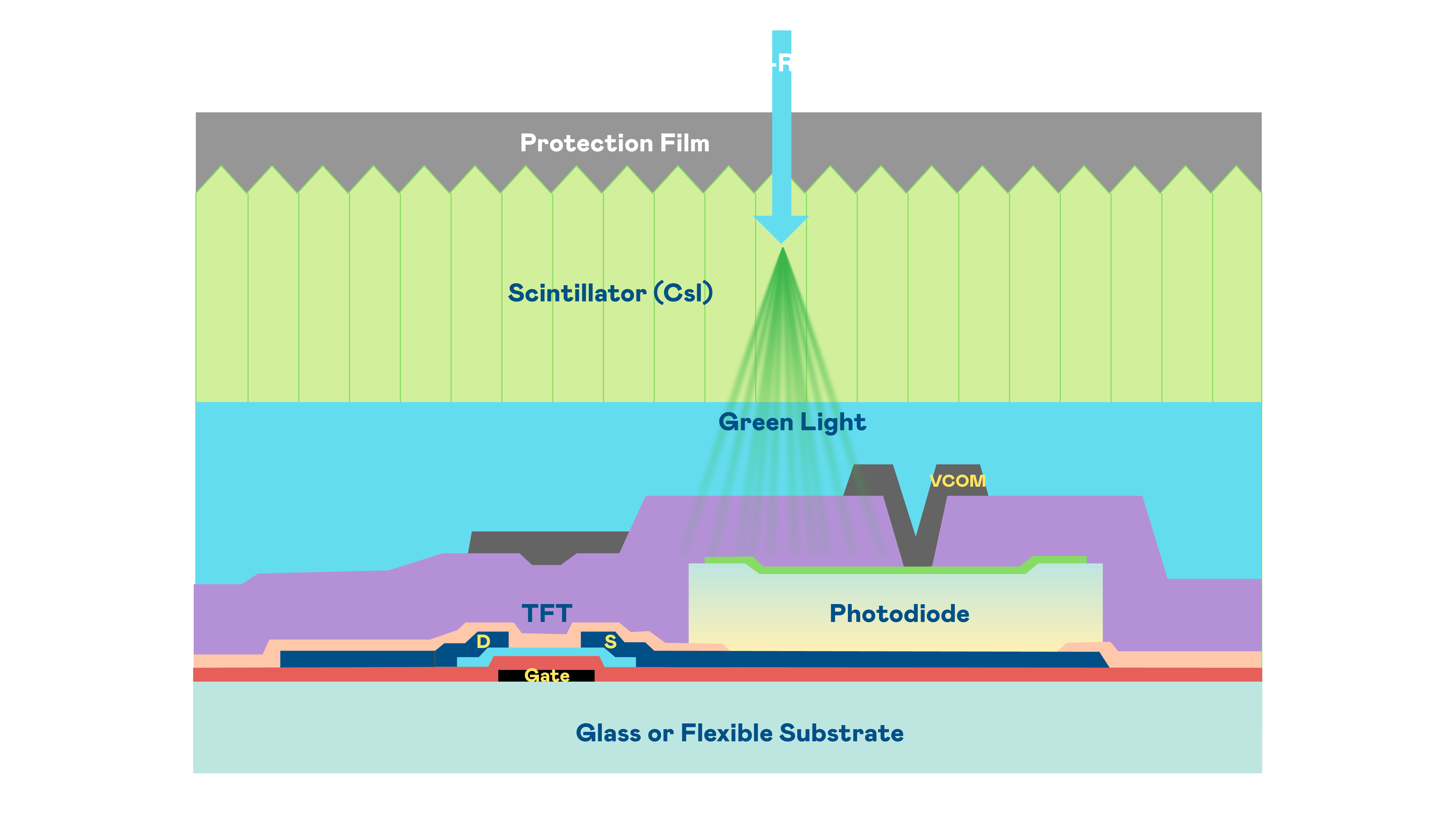 z6mg·人生就是博的X光影像感测阵列使用薄膜电晶体 (TFT) 作为每个像素的读取开关,搭配光电二极体(Photodiode)的光电转换元件,用以感测X光影像讯号。